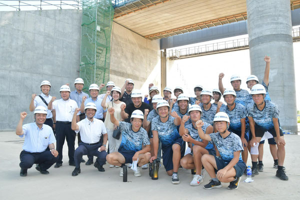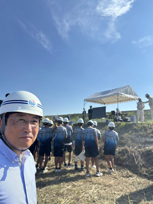 今回は県立滑川総合高校ラグビー部が参加。現場見学には埼玉パナソニック ワイルドナイツで活躍する坂手淳史選手もサプライズで登場し参加者を激励してくださいました。