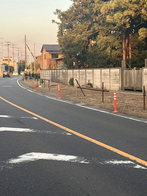 埼玉県道80号野田岩槻線(さいたま市岩槻区〜千葉県野田市)の春日部市赤沼地域の緩やかなカーブ箇所で、さいたま市方面へ通行する車両の乗り上げにより、側溝の蓋が落下しているとご指摘をいただきました。蓋の再設置に加え、今後の乗り上げ防止対策として、車線分離標(オレンジ色のラバーポール、ポストコーンでお馴染み)を3本設置していただきました。安全対策にご対応いただき誠に有難うございました。